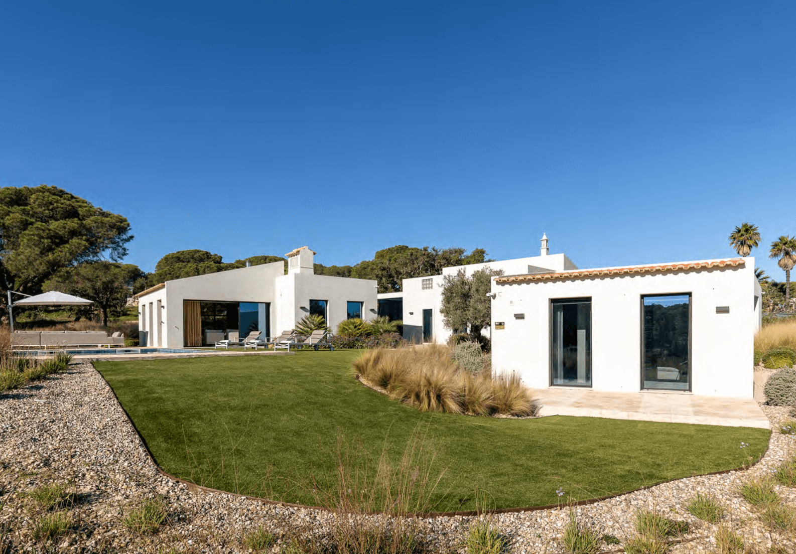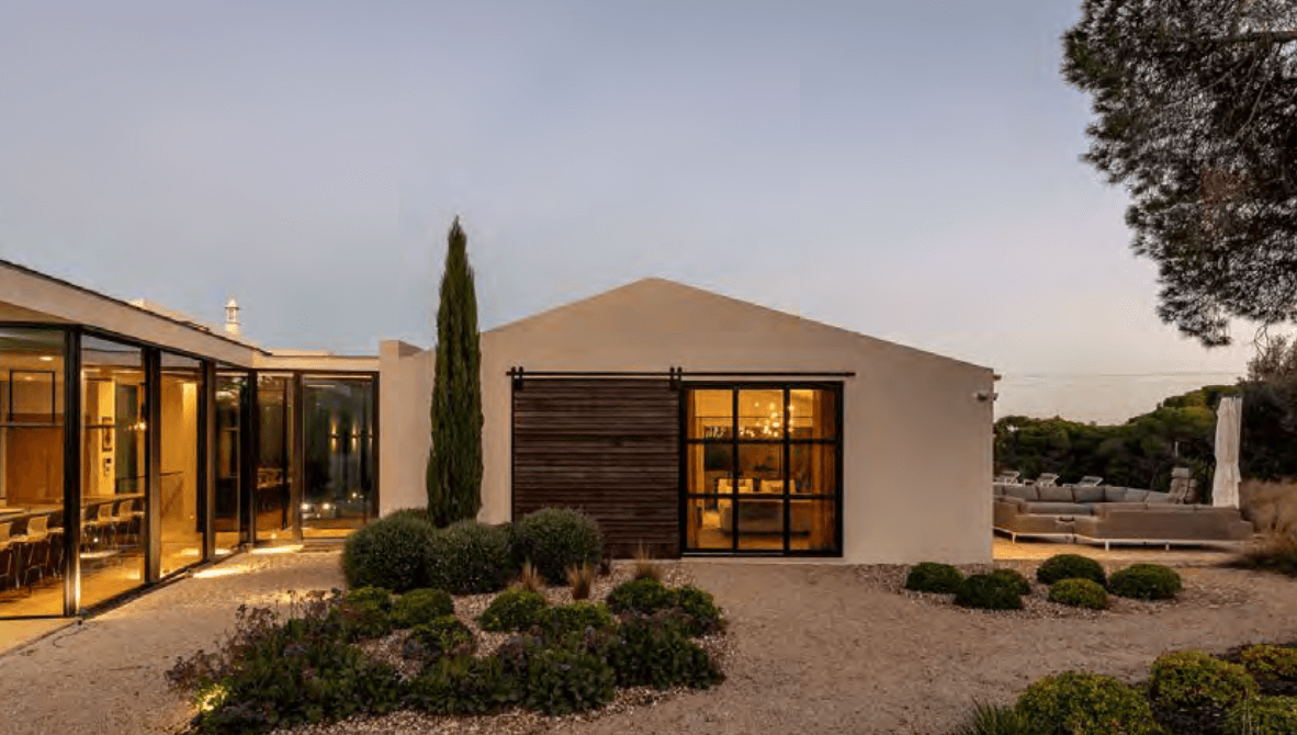 This beautifully restored Algarvian farmhouse, blends traditional Portuguese character with contemporary luxury to create a stunning five-bedroom villa with a private saltwater pool. Designed across several harmonious buildings, the property offers modern comfort while retaining its authentic charm. The villa features stylish living and dining spaces with wooden floors, striking artwork and design-led lighting, alongside a sleek open-plan kitchen with a central island and high-end appliances. Large doors open onto shaded outdoor dining areas with an integrated gas BBQ, perfect for al-fresco living. All five air-conditioned bedrooms are generously appointed, including a spacious master suite with a private bath and relaxation area, as well as multiple en-suite and adjacent shower rooms. Outside, the heated saltwater pool is surrounded by sun loungers, seating areas and a large private plot offering peace and privacy. Located just a short drive from Vale do Lobo, Quinta do Lago, renowned beaches, golf courses and excellent restaurants, this exceptional villa is an ideal retreat combining countryside tranquillity with modern luxury.