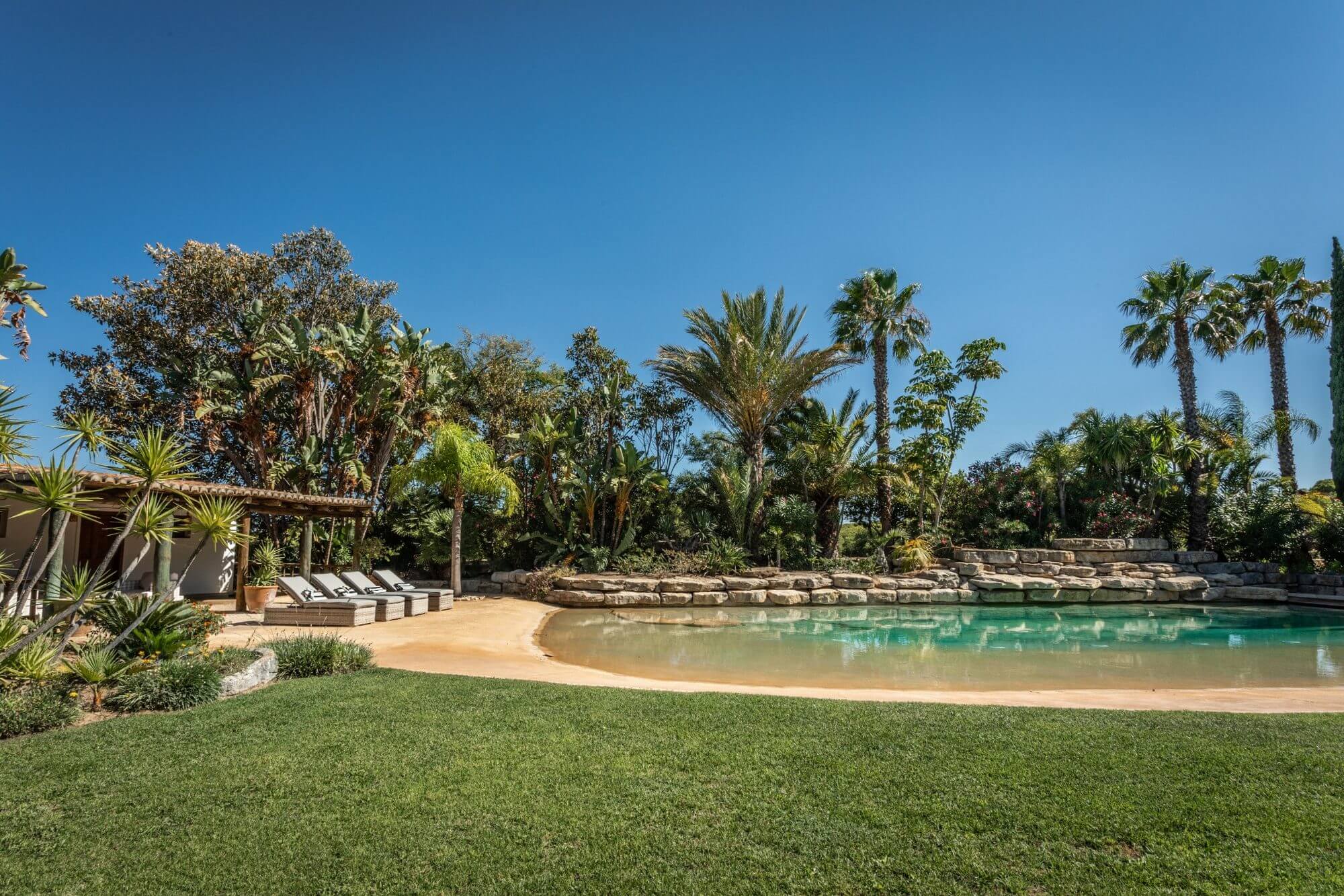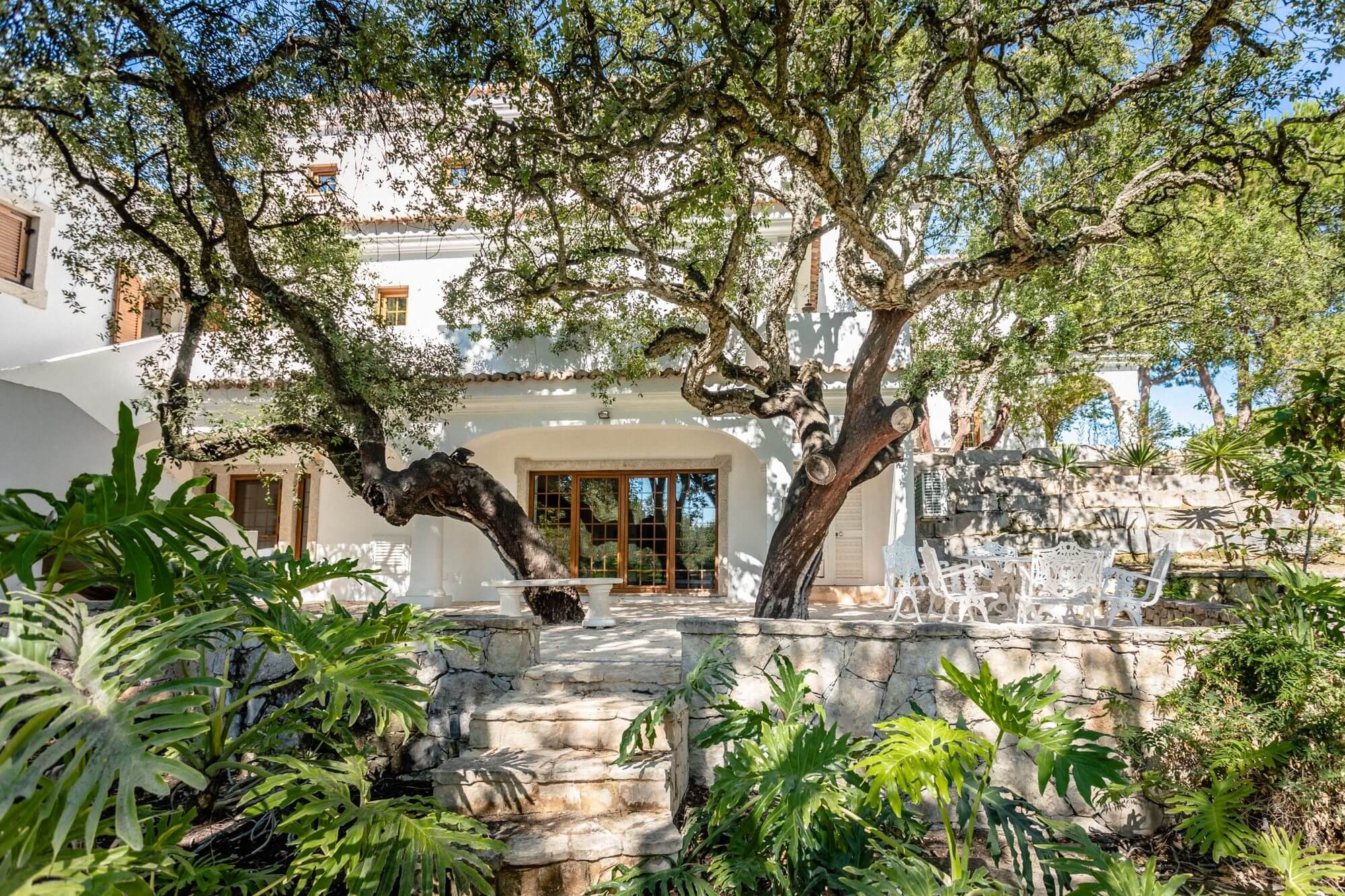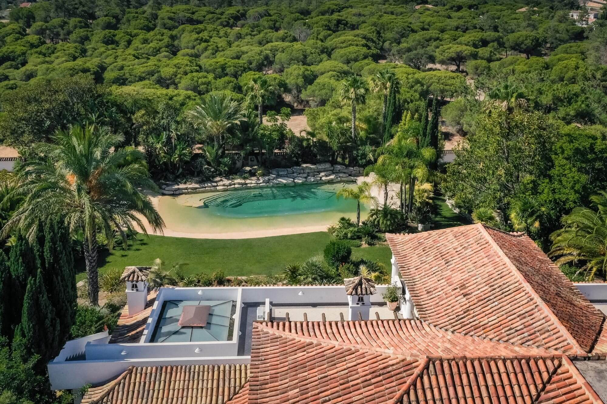 An exceptional and very private traditional Portuguese Quinta, set within 6,000m² of landscaped gardens near Quinta do Lago. Fully fenced with electric gates, the property offers a large swimming pool, jacuzzi, fish pond, and total privacy in a secure location just minutes from Quinta do Lago beach and close to IBC security.