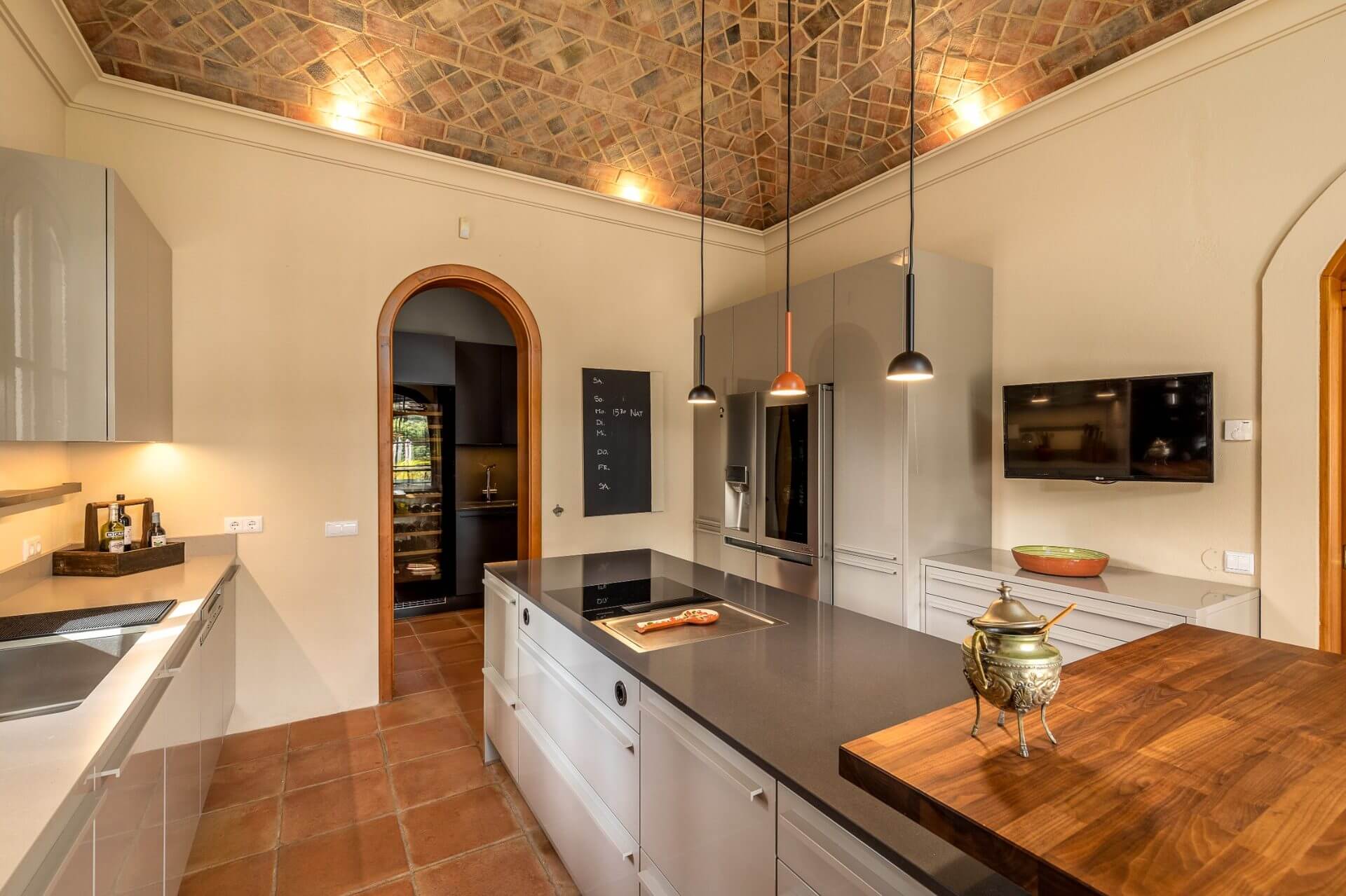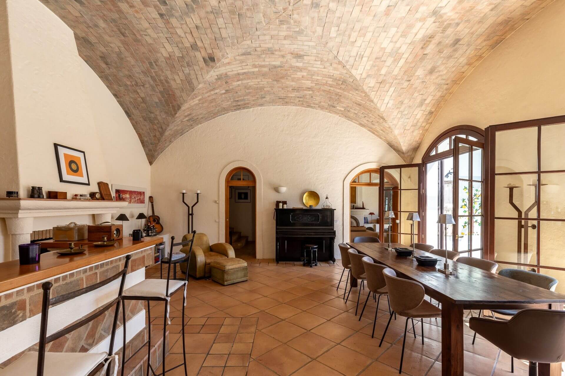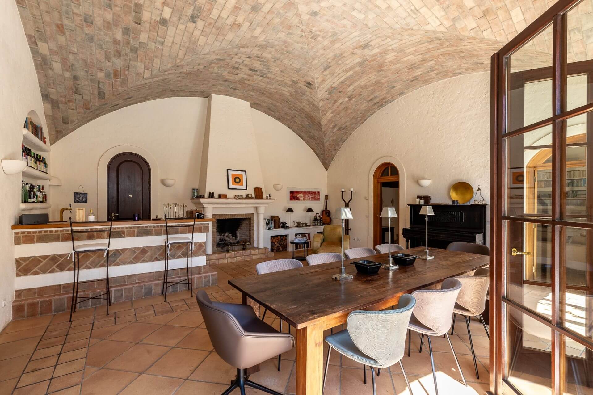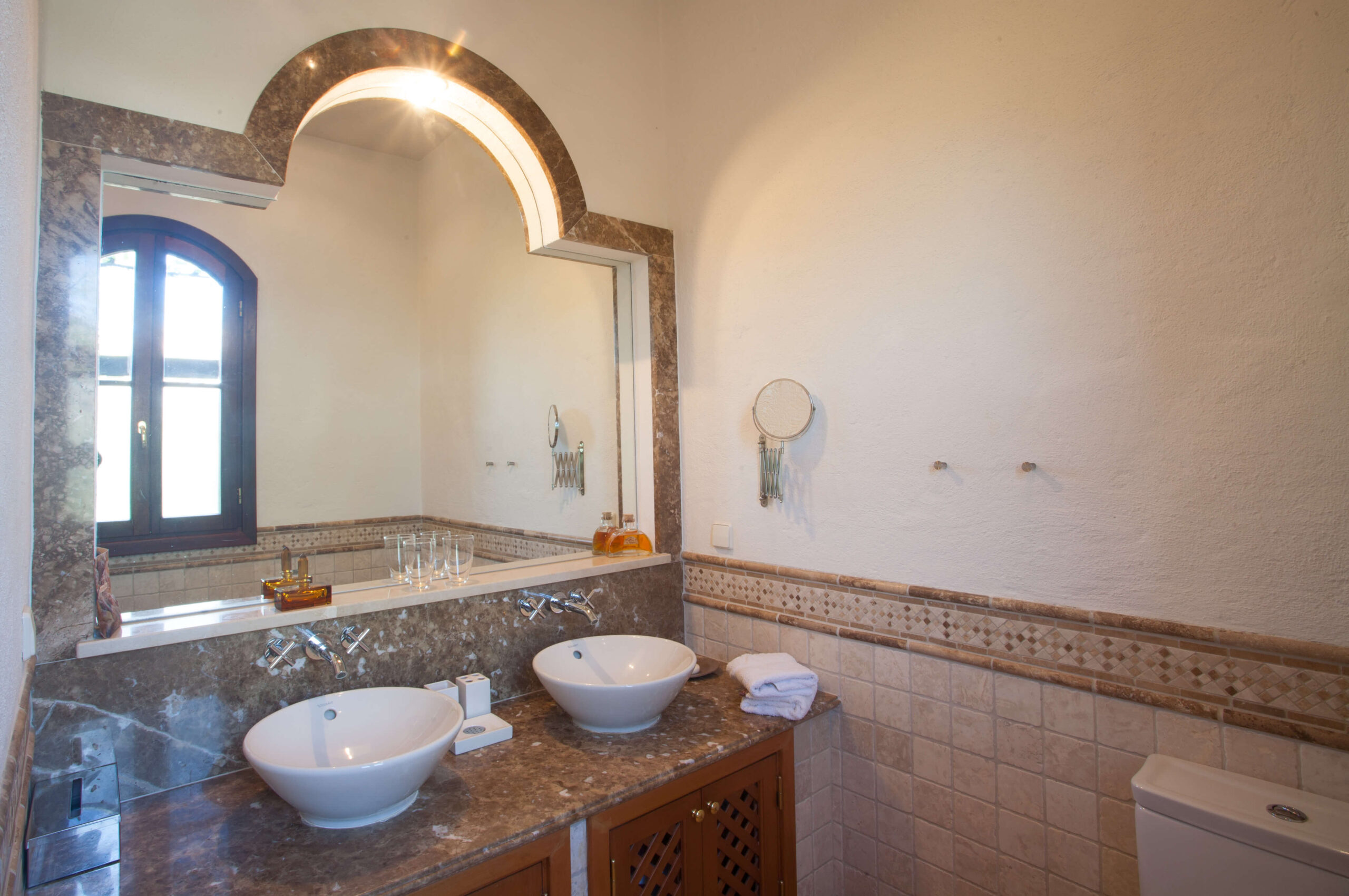 This villa built such as an Hacienda with 4 bedrooms leading to a charming outside patio which provides privacy to the guests. The main villa includes entrance hall, guest bathroom, a fully equipped kitchen, laundry with dyer and washing machine, spacious dining area with bar, fireplace, and vaulted ceiling of donkey bricks, a TV and sitting area also with fireplace with cable TV, DVD and Hifi. All the living areas and kitchen overlook the pool terrace.