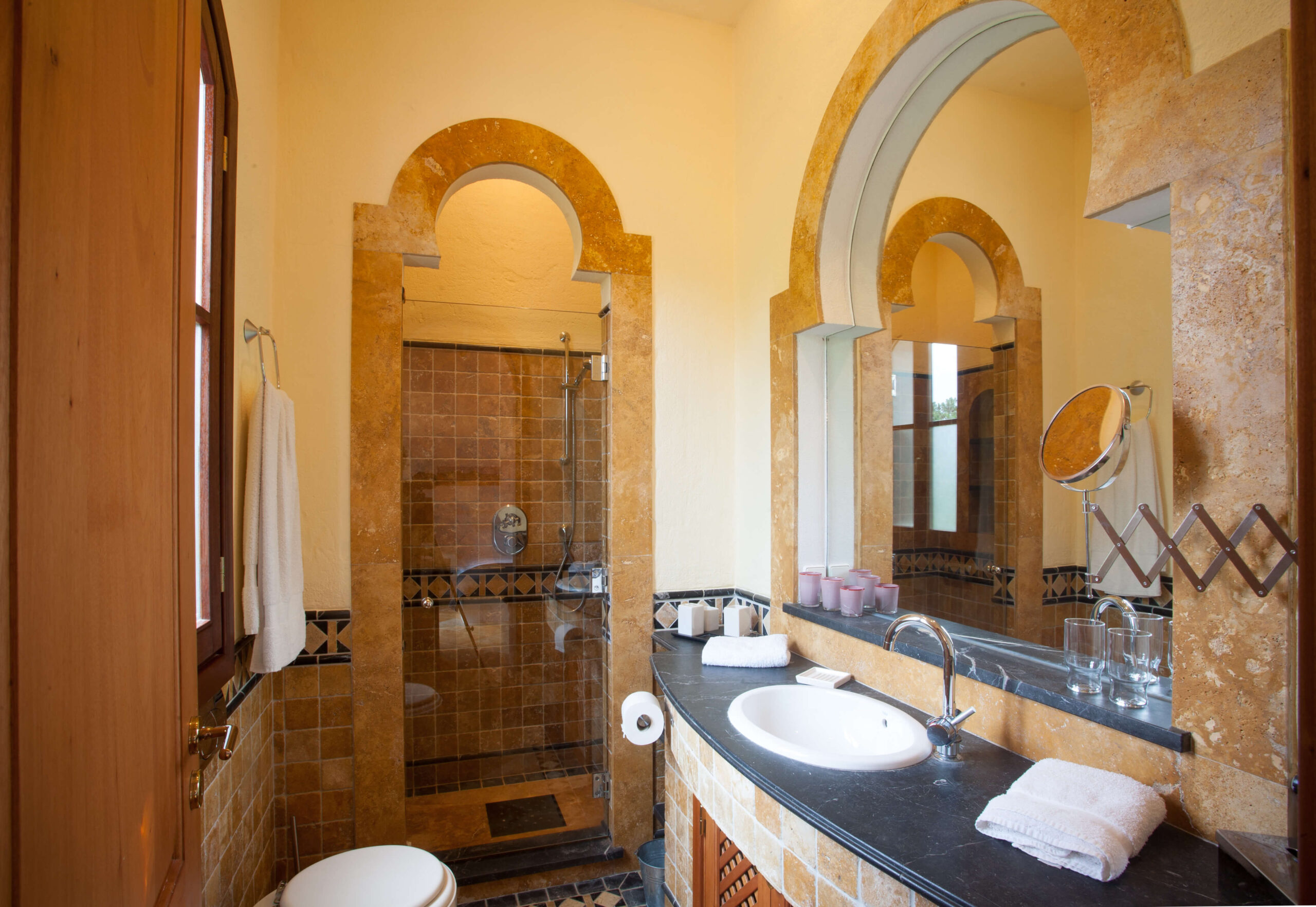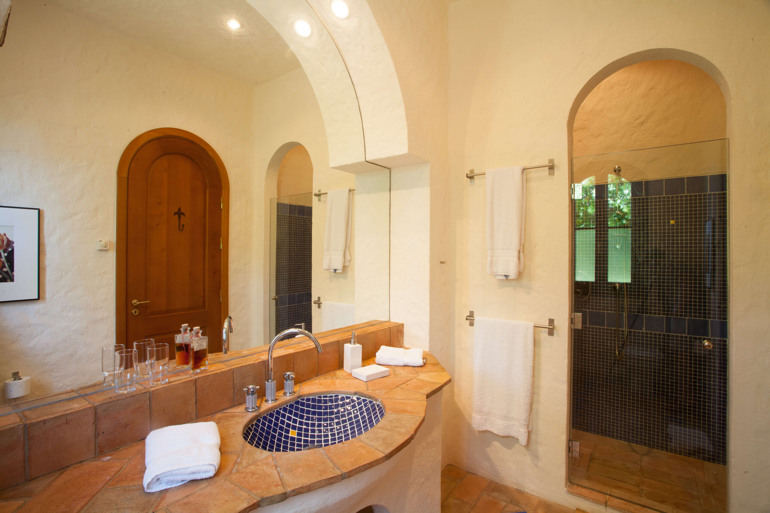 Courtyard bedrooms: 4 bedrooms all with built-in king-size beds, en-suite bathrooms with showers, cable TVs, A/C split units and under-floor heating.