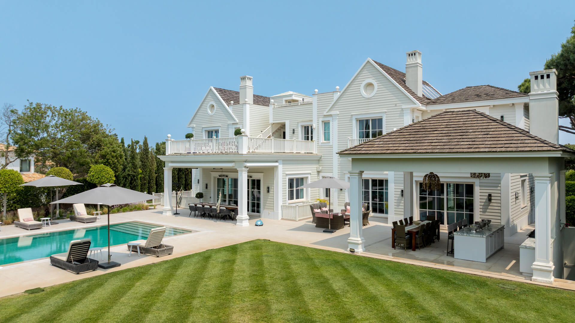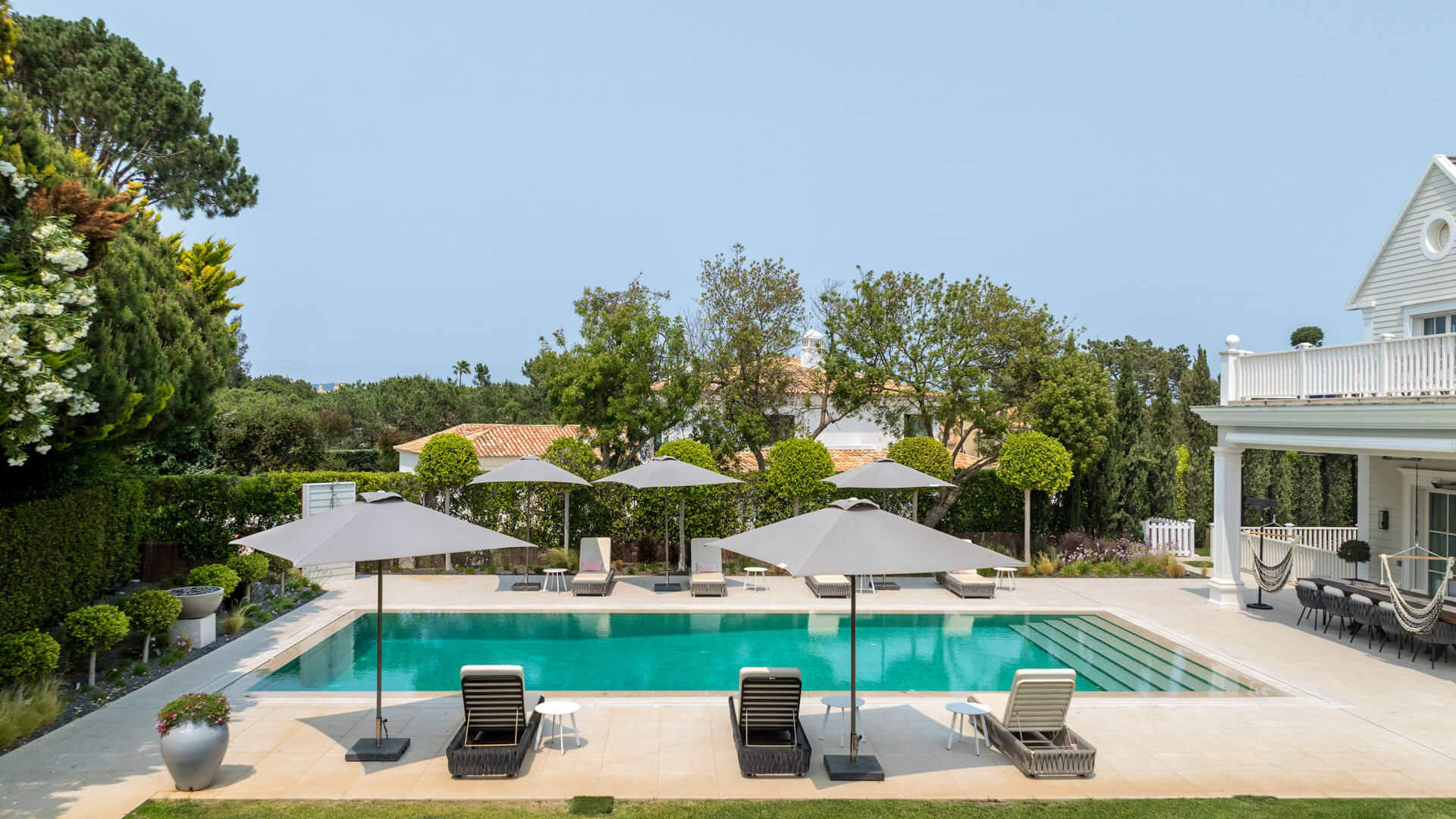 An exceptional five-bedroom Southampton-style villa situated in a prime position within Quinta do Lago’s prestigious Parque Atlântico.