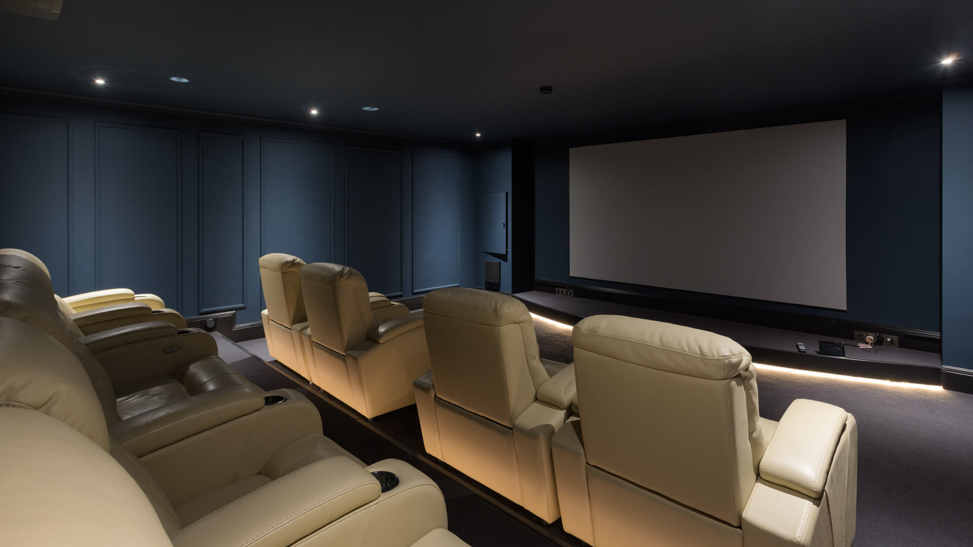 The basement level includes a further bedroom suite, a naturally lit gym with sauna, steam room, and shower, a TV/games room, a cinema room, a large garage, a cloakroom, and a utility room.